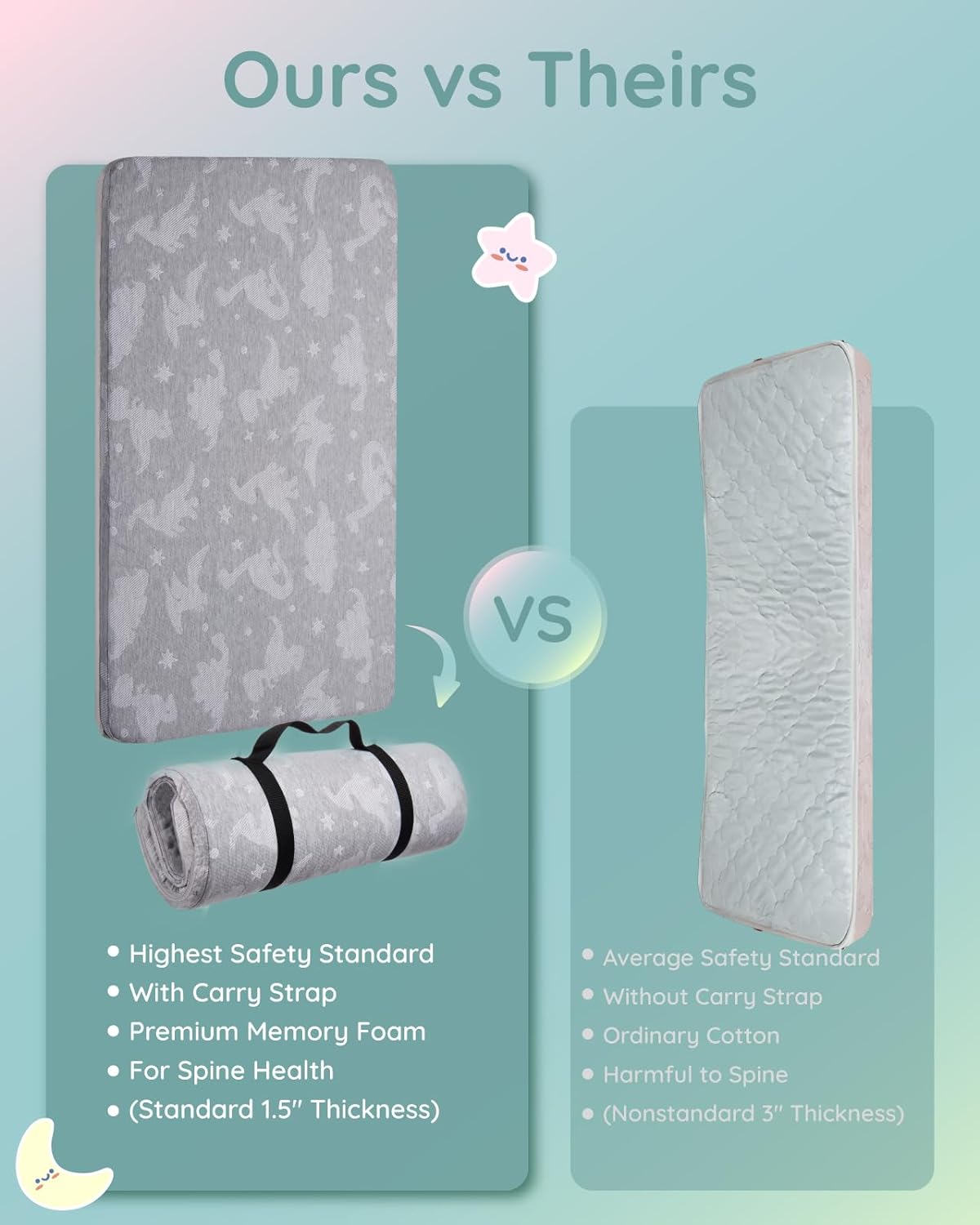 On August 15, 2022, the US Government banned ALL playard mattresses exceeding 1.5" in thickness, our playard Mattress with 1.5" thickness adheres to all Federal Regulation to reduce the risk of suffocation. Meanwhile provides consistent comfort and support for baby's developmental needs.