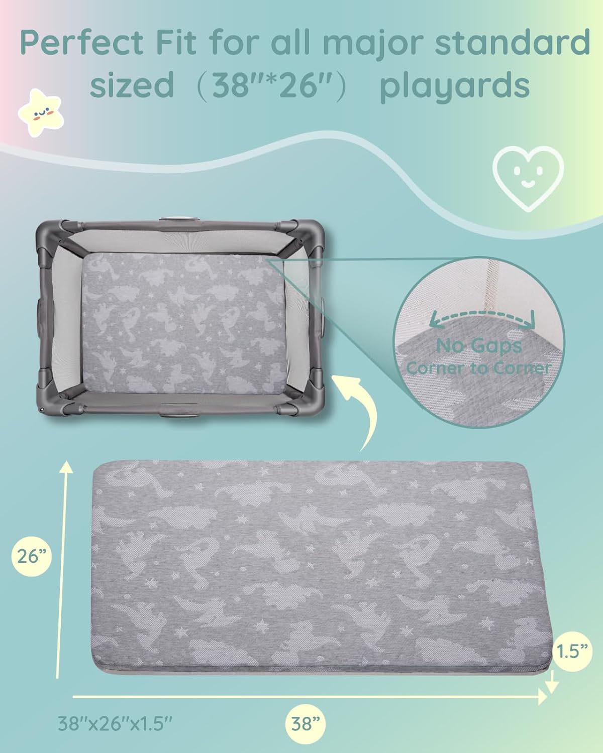 Lilian&Gema Pack and Play Mattress 38"x26"x1.5", Portable Crib Mattress for Playpen, Pack N Play Mattress Topper, Soft Breathable Memory Foam with Waterproof Washable Cover for Baby Toddler