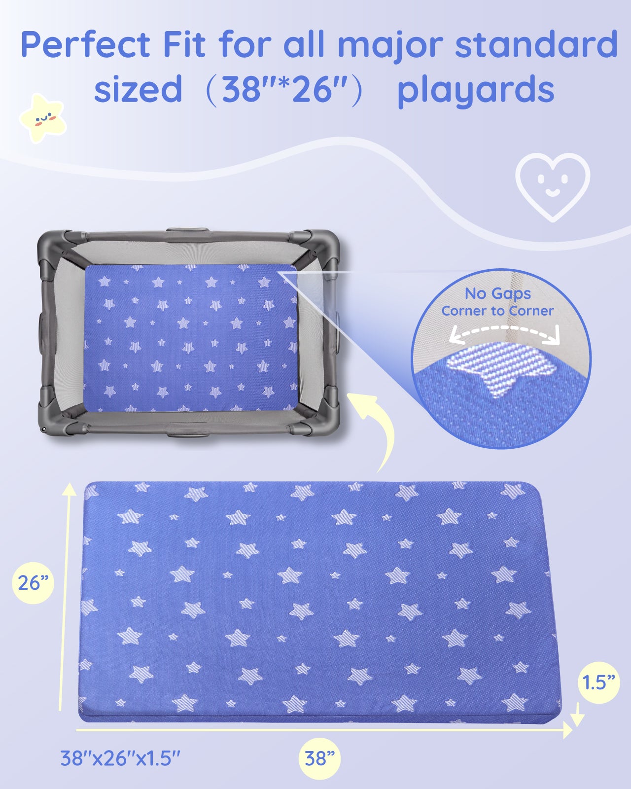 Lilian&Gema Pack and Play Mattress 38"x26"x1.5", Portable Crib Mattress for Playpen, Pack N Play Mattress Topper, Soft Breathable Memory Foam with Waterproof Washable Cover for Baby Toddler