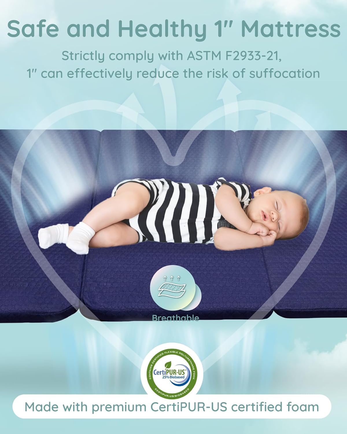 More importantly, compared to thicker mattresses, 1 inch can effectively reduce the risk of suffocation.