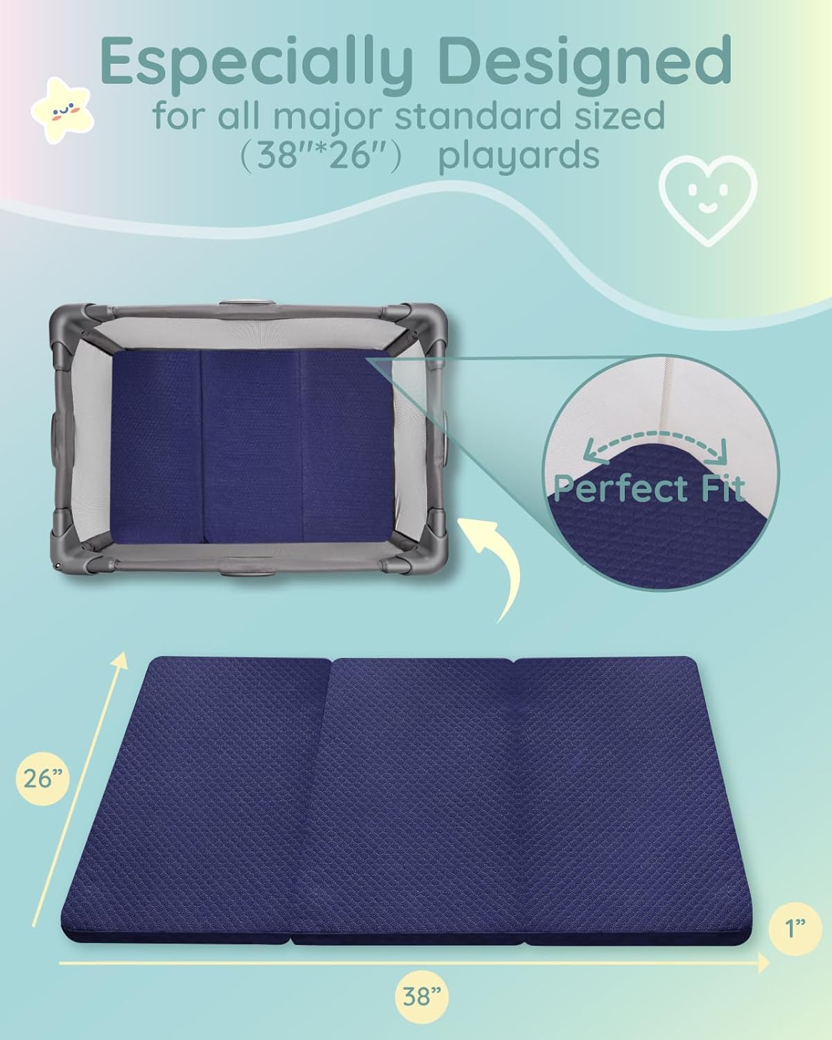 Lilian&Gema Pack and Play Mattress 38"x26"x1", Pack N Play Mattresses Pad for Play Pen and Playard, Premium Memory Foam Playpen Mattress Topper with Washable Cover & Traveling Bag for Baby Toddler