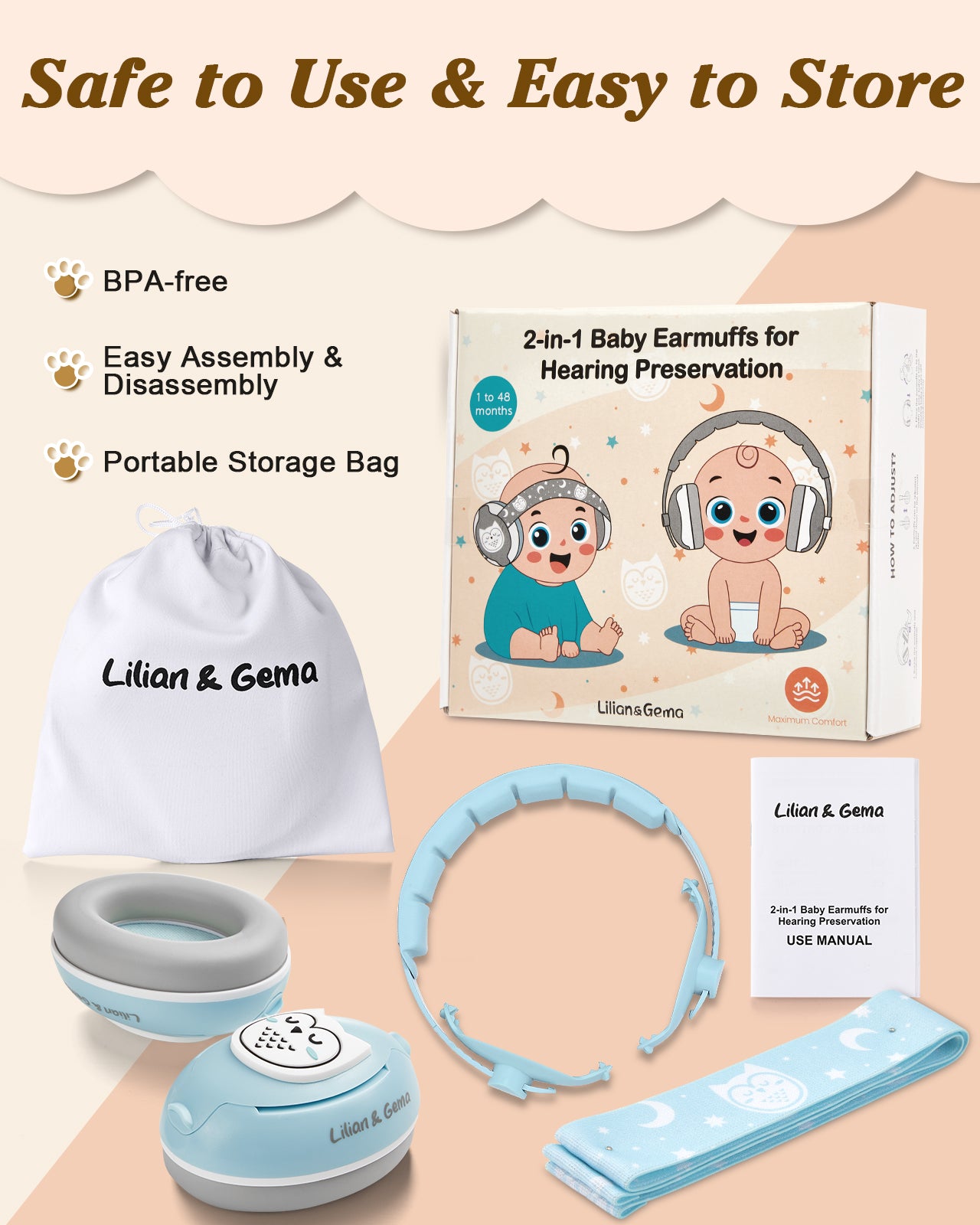 Lilian&Gema 2-in-1 Baby Ear Muffs Noise Protection, Adjustable Baby Headphones with Band, Owls Noise Cancelling Headphones for Baby & Toddler up to 4 Years, Baby Airplane Essentials/Outdoor, Blue