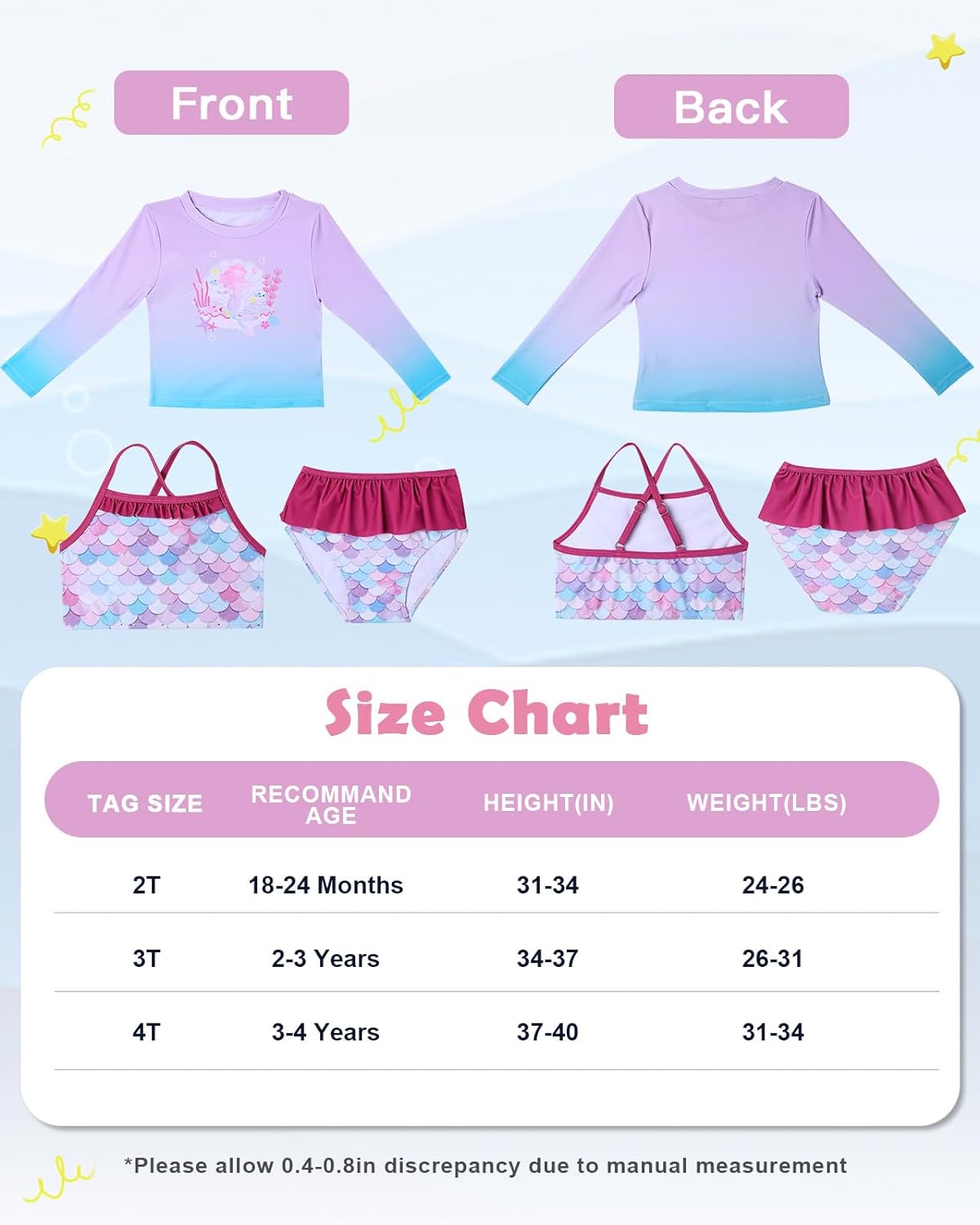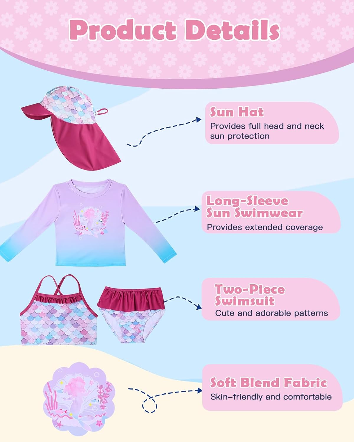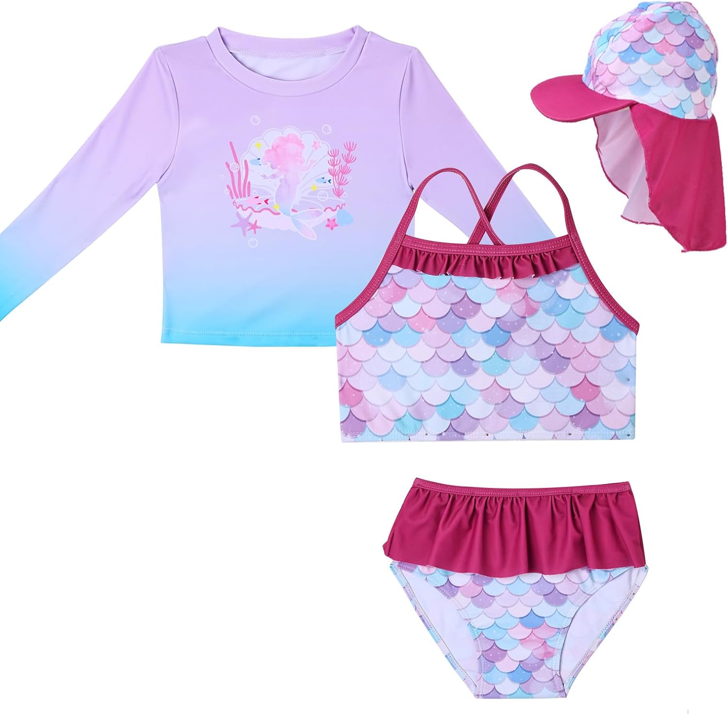 Lilian & Gema 4-Piece Baby Toddler Girl Swimsuit Set - Tankini & Rash Guard Girls Bathing Suit with UPF 50+ Sun Protection