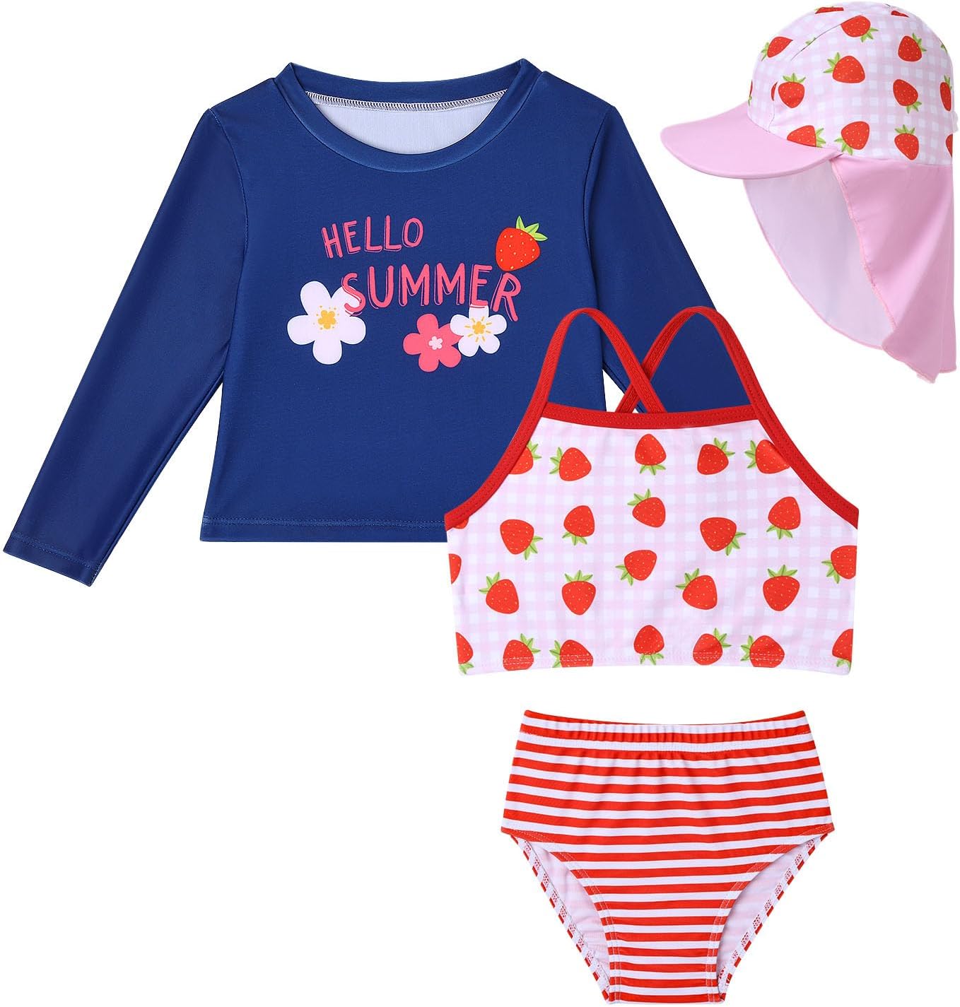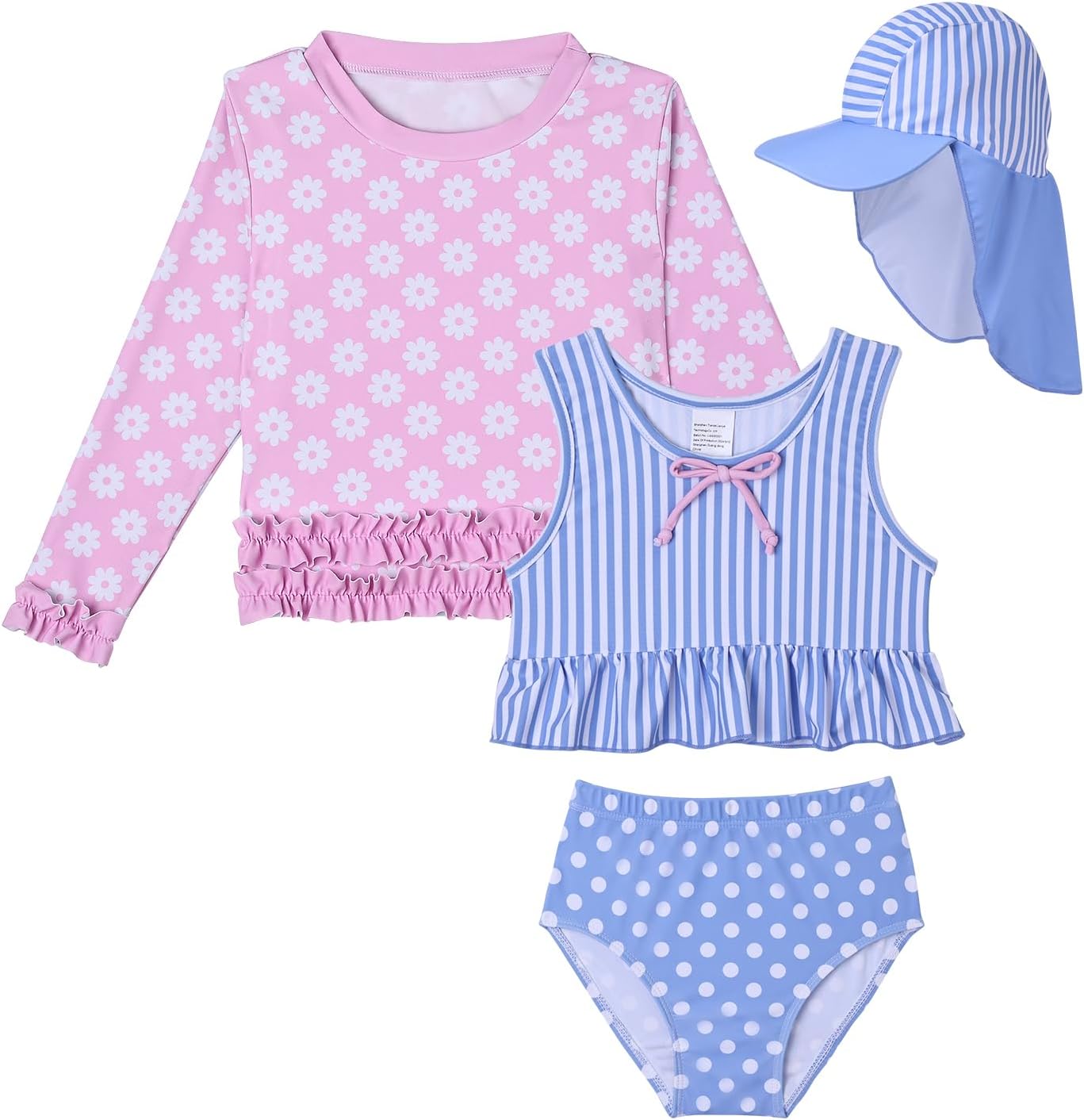 Lilian & Gema 4-Piece Baby Toddler Girl Swimsuit Set - Tankini & Rash Guard Girls Bathing Suit with UPF 50+ Sun Protection
