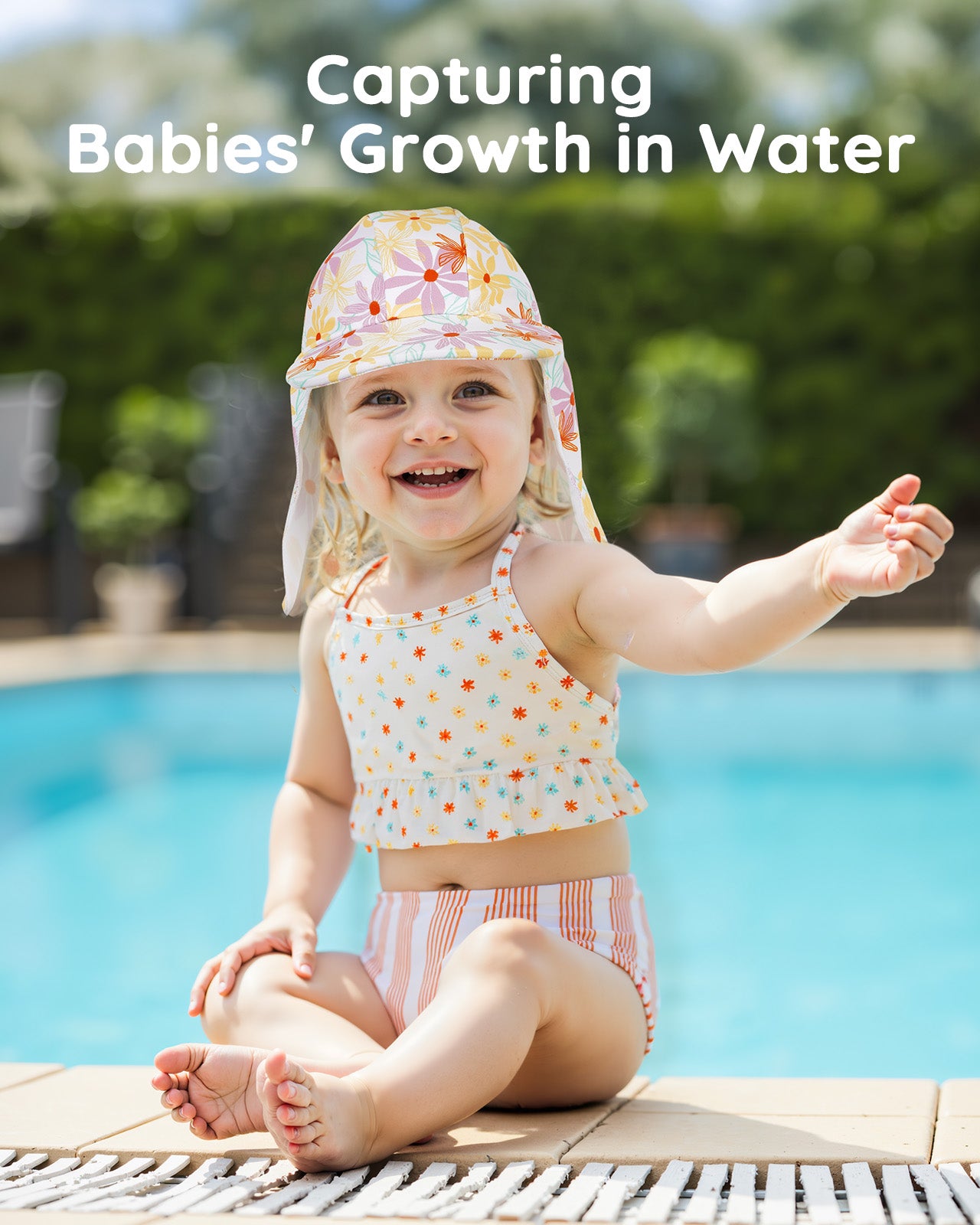 Lilian & Gema 4-Piece Baby Toddler Girl Swimsuit Set - Tankini & Rash Guard Girls Bathing Suit with UPF 50+ Sun Protection, Flower, 4T