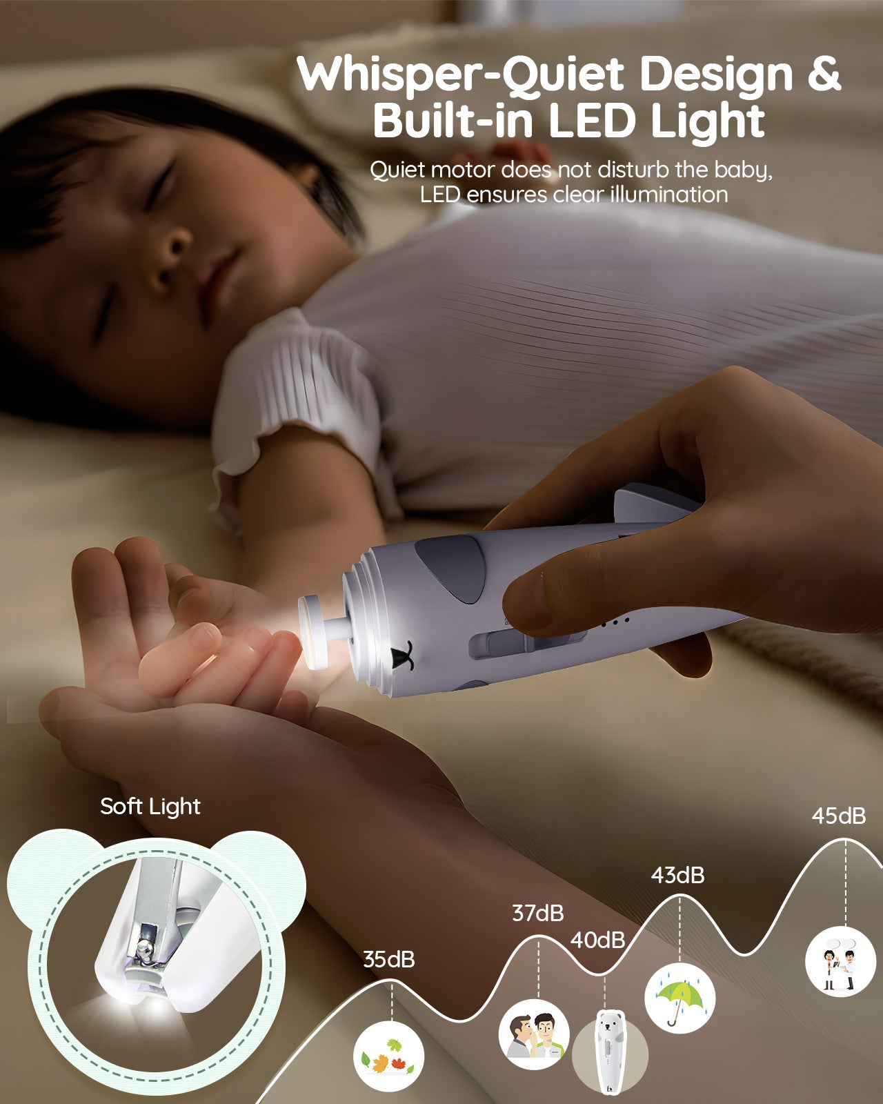 Lilian&Gema Baby Healthcare and Grooming Kit, 28-in-1 Rechargeable Nail Trimmer Electric Set, Dual Auto Light Baby Nail Care Kit, Portable Newborn Nursery Health Care Set for Infant Toddler (Grey)