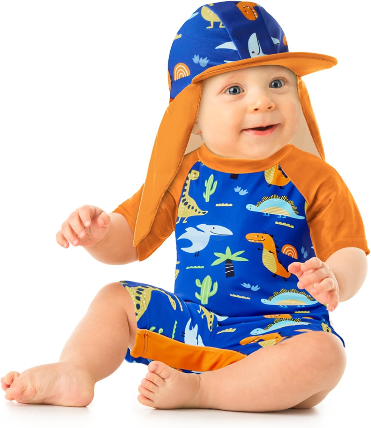 Lilian&Gema Toddler Boy Swimsuit UPF 50+ Protection One Piece Zipper Bathing Suit Baby Swimsuit with Adjustable Sun Hat